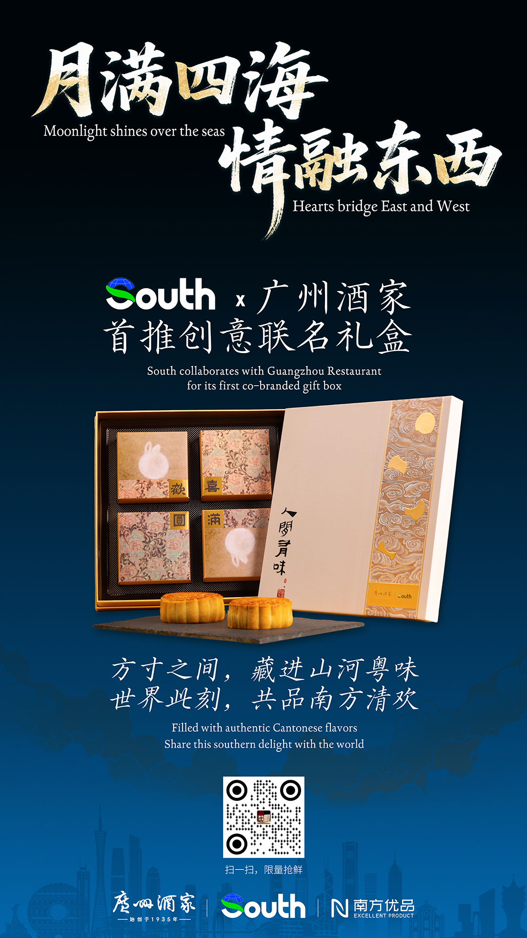 人间有味,情融东西。南方报业传媒集团South与中华老字号广州酒家联名的“人间有味”月饼礼盒,已在“南方优品微信小店”正式上线!这款月饼融合岭南文化精髓与广府风味,以匠心工艺和深厚文化,向世界讲述中国时节里的文化故事,呈现一场融合传统与创新的中秋礼赞。