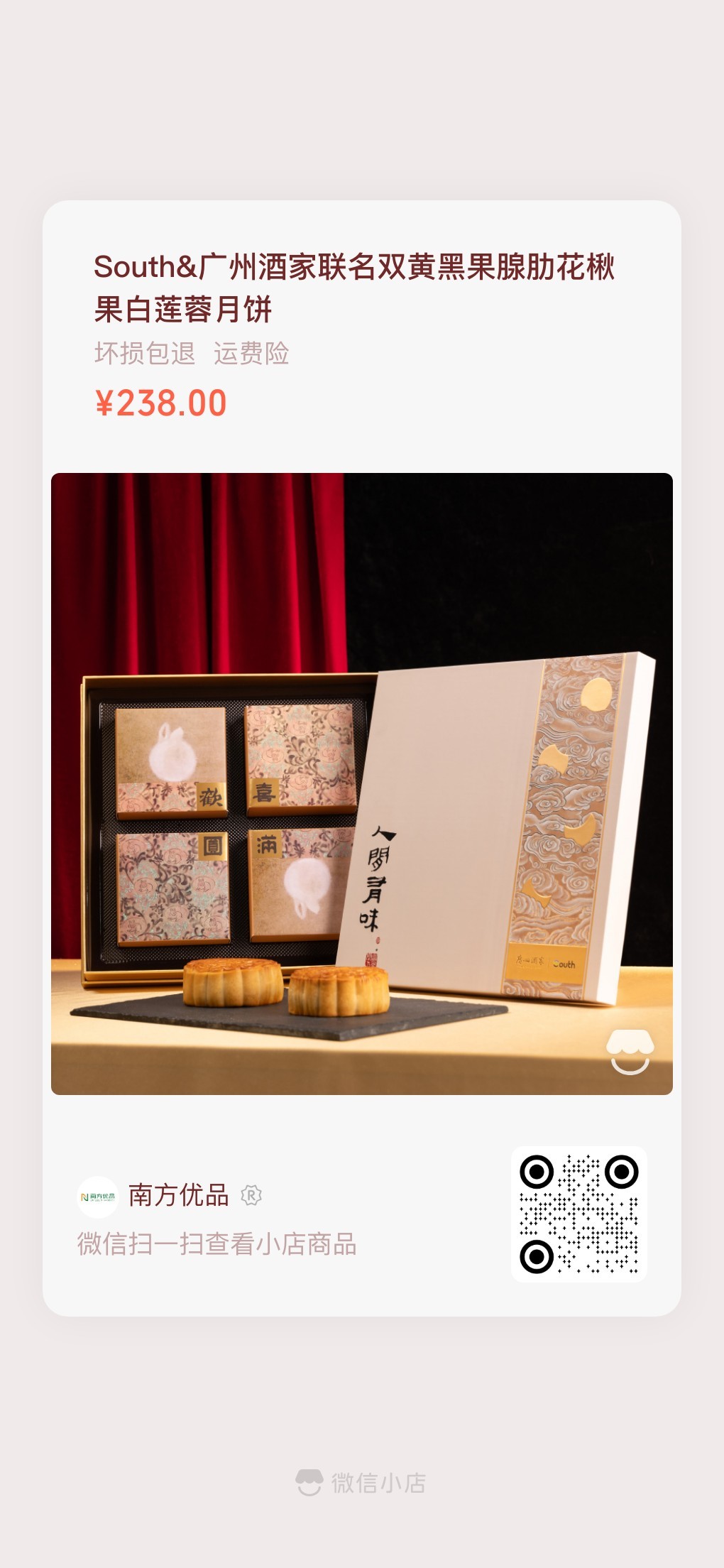 “人间有味”月饼已在“南方优品微信小店”正式开售,限时92折优惠!点击下方图片进入微信小店,抢先下单,将这份融合文化、艺术与风味的岭南心意带回家,与挚爱之人共赏月圆、共话情长。