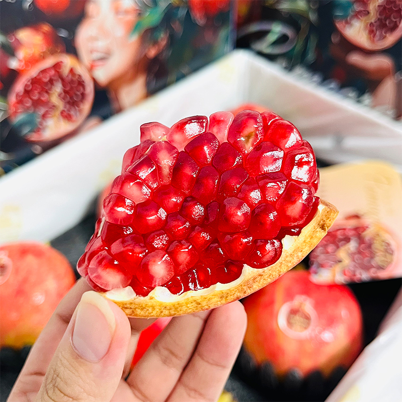 汁水如泉涌,甜润中透着一丝清爽,不腻不涩,随手抓一把果粒放入口中,仿佛喝下一杯天然石榴汁,畅快淋漓!